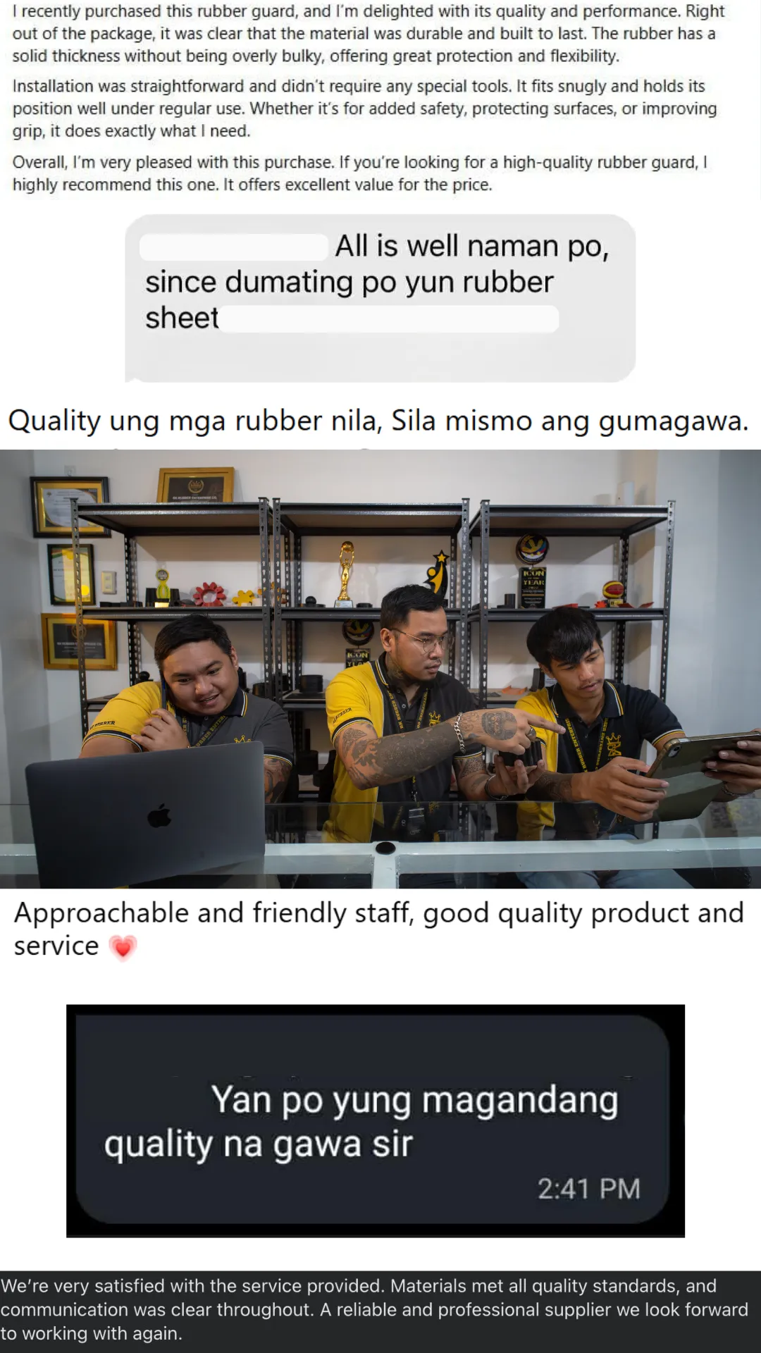 Settle the remaining balance, send proof of payment, and receive your custom rubber products.